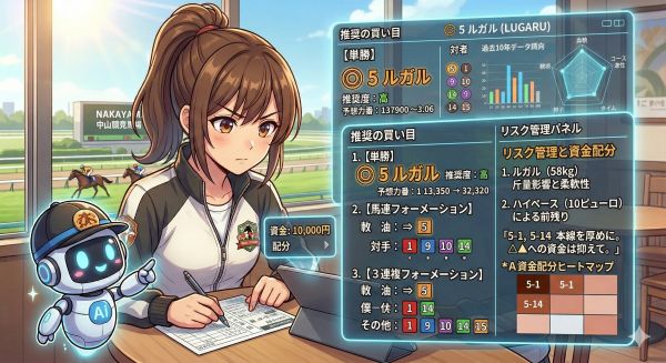 そのため、資金配分は広く薄く張るのではなく、オッズを見ながら馬連・三連複の本線(5-1、5-14絡み)に厚めに資金を寄せる資金管理をおすすめする。